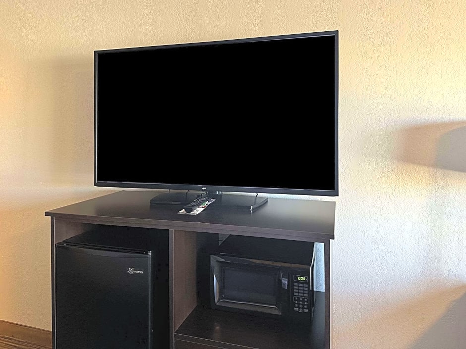 This room has a satellite TV, a microwave and a refrigerator.
